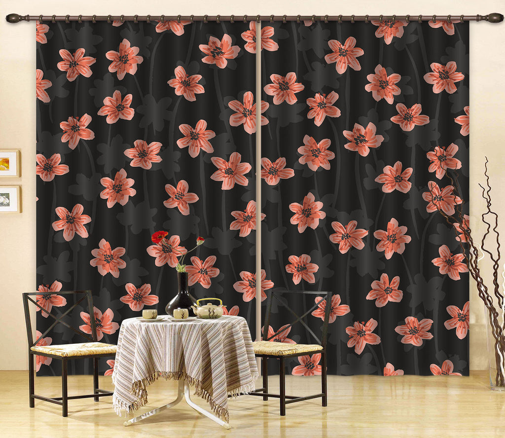 3D Red Flowers Pattern 11169 Kashmira Jayaprakash Curtain Curtains Drapes Sinsin