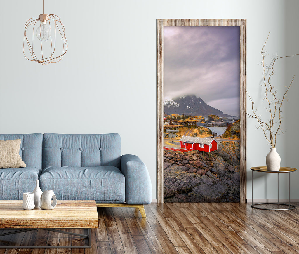 3D Rock Mountains Red Houses 11617 Marco Carmassi Door Mural Sinsin