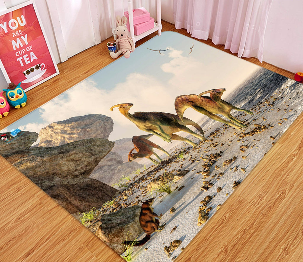 3D Seaside Dinosaur 82 Non Slip Rug Mat