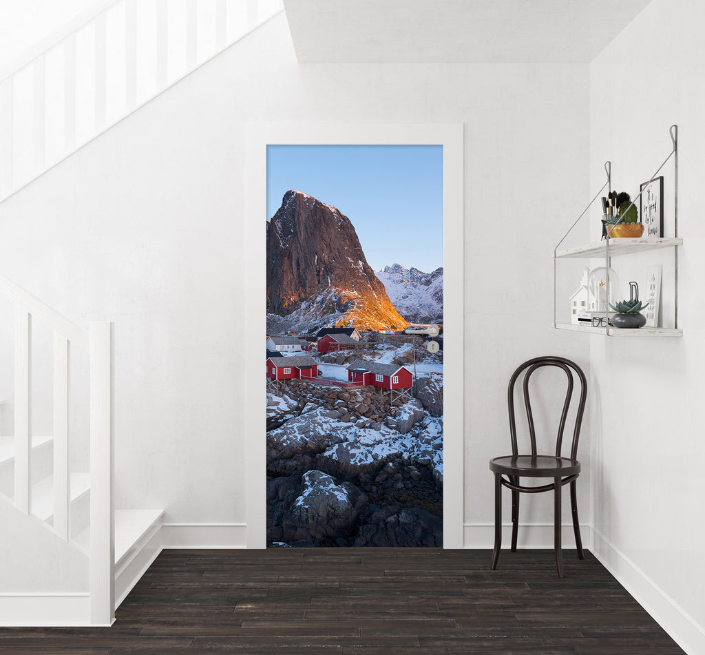 3D Snow Rock Red Cabin 119182 Marco Carmassi Door Mural Sinsin