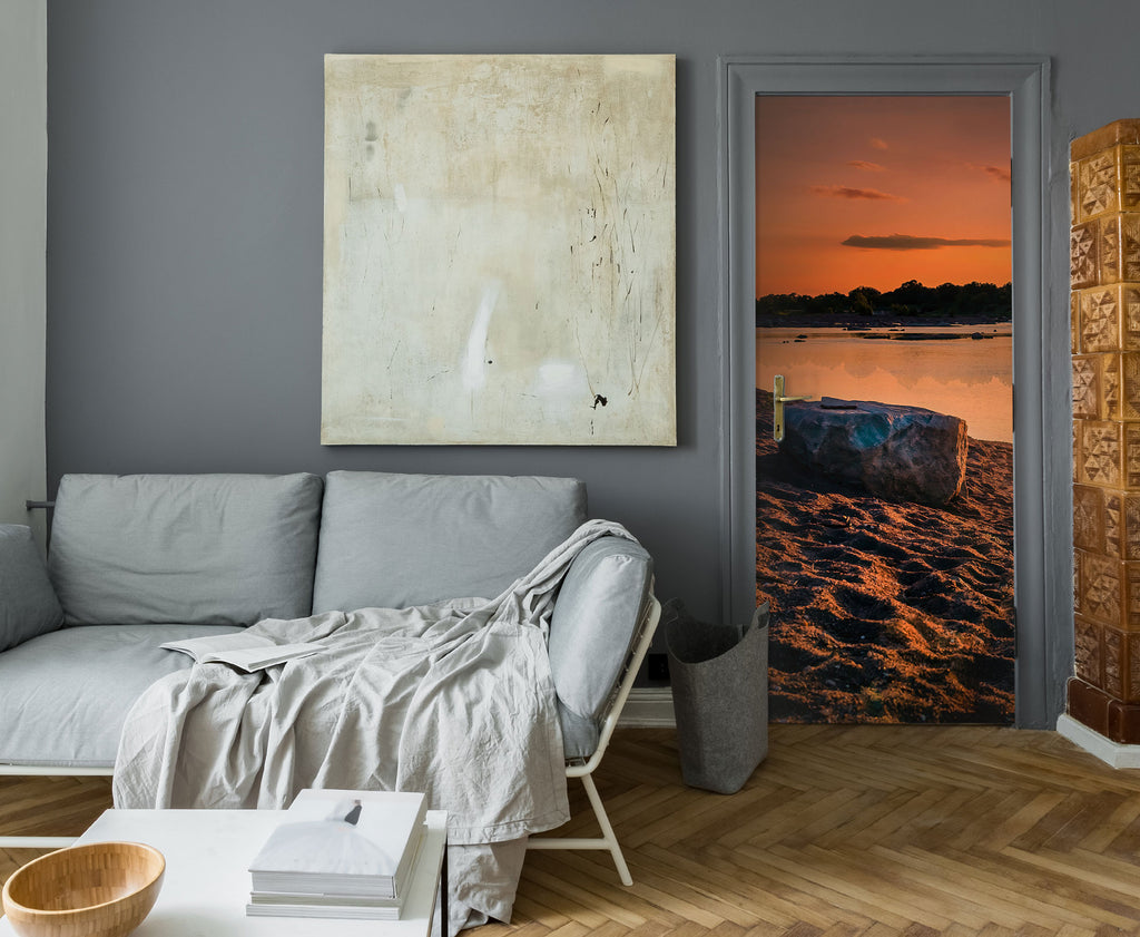 3D Sunset Lakeside Stone 107204 Beth Sheridan Door Mural Sinsin