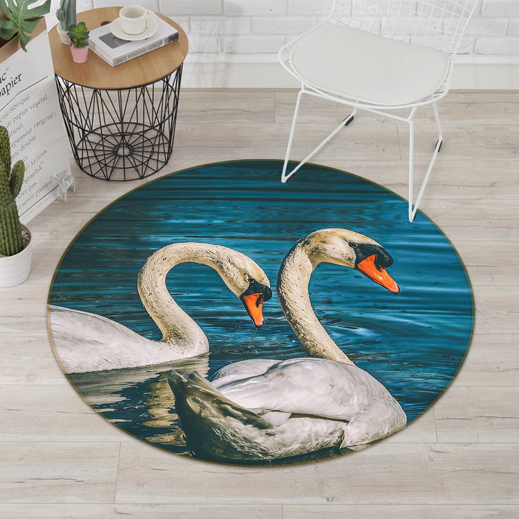 3D Swan Lake 097 Animal Round Non Slip Rug Mat