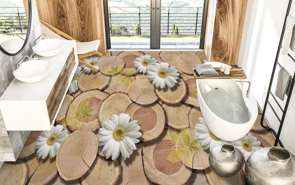 3D Tree Stump And Daisies 421 Floor Mural Romy