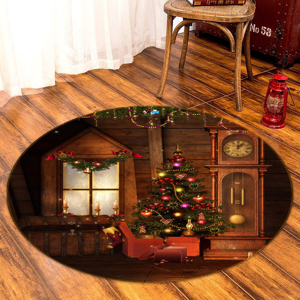 3D Tree Window Clock 55160 Christmas Round Non Slip Rug Mat Xmas Sinsin