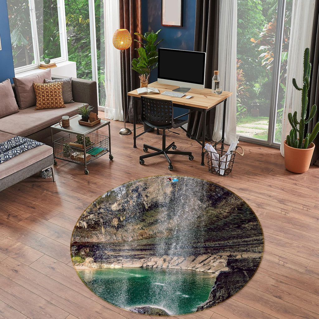 3D Waterfall Lake 5020 Beth Sheridan Rug Round Non Slip Rug Mat Amy