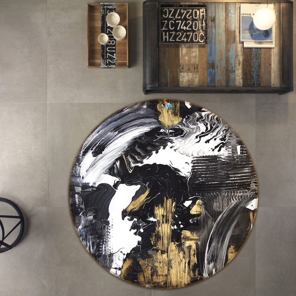 3D White Black Gold 122 Round Non Slip Rug Mat