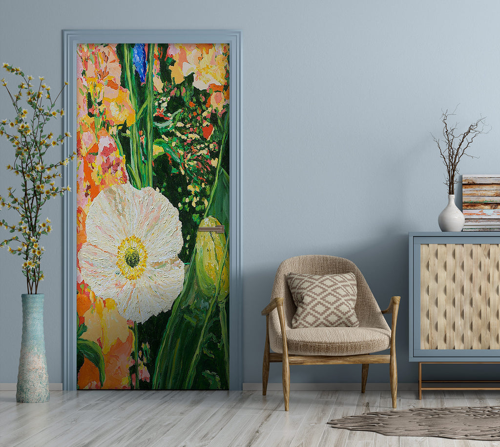 3D White Flowers Clump 9366 Allan P. Friedlander Door Mural Sinsin