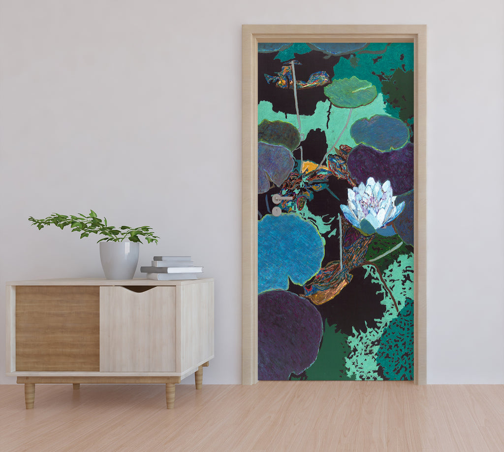 3D White Lotus Leaf 93155 Allan P. Friedlander Door Mural Sinsin