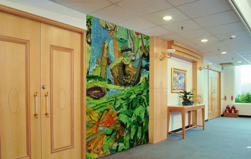 Align panel 2 to panel 1. Simply match the pattern of the mural (with 2cm overlap).No need to cut. Repeat for additional panels. Trim any ceiling and baseboard overage, lt's better to wipe the mural's surface with a wet cloth after the installation. Because it will make more sticky.