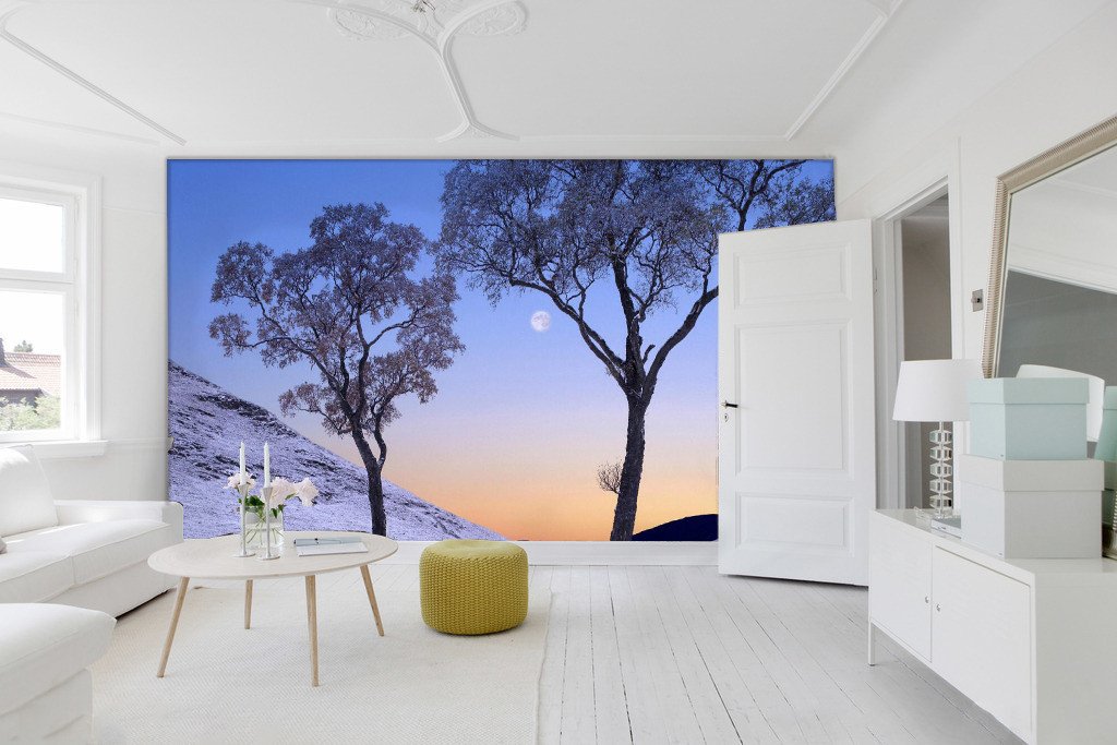 Align panel 2 to panel 1. Simply match the pattern of the mural (with 2cm overlap).No need to cut. Repeat for additional panels. Trim any ceiling and baseboard overage, lt's better to wipe the mural's surface with a wet cloth after the installation. Because it will make more sticky.
