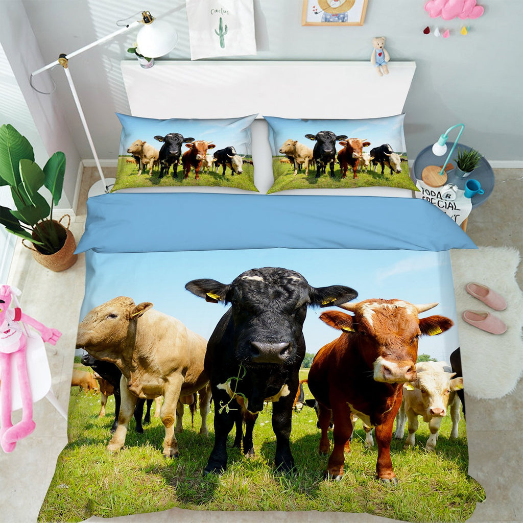 3D Herd Cows 1931 Bed Pillowcases Quilt