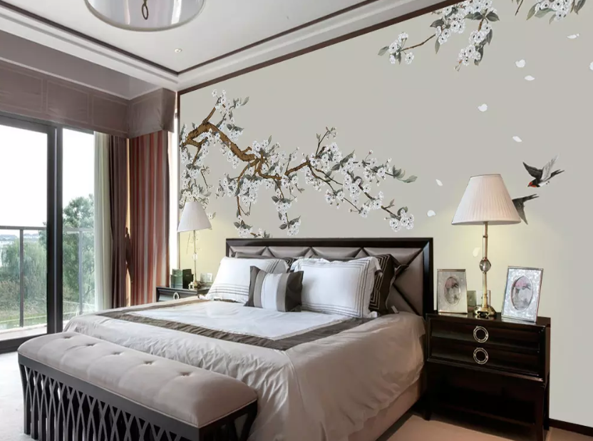 Align panel 2 to panel 1. Simply match the pattern of the mural (with 2cm overlap).No need to cut. Repeat for additional panels. Trim any ceiling and baseboard overage, lt's better to wipe the mural's surface with a wet cloth after the installation. Because it will make more sticky.