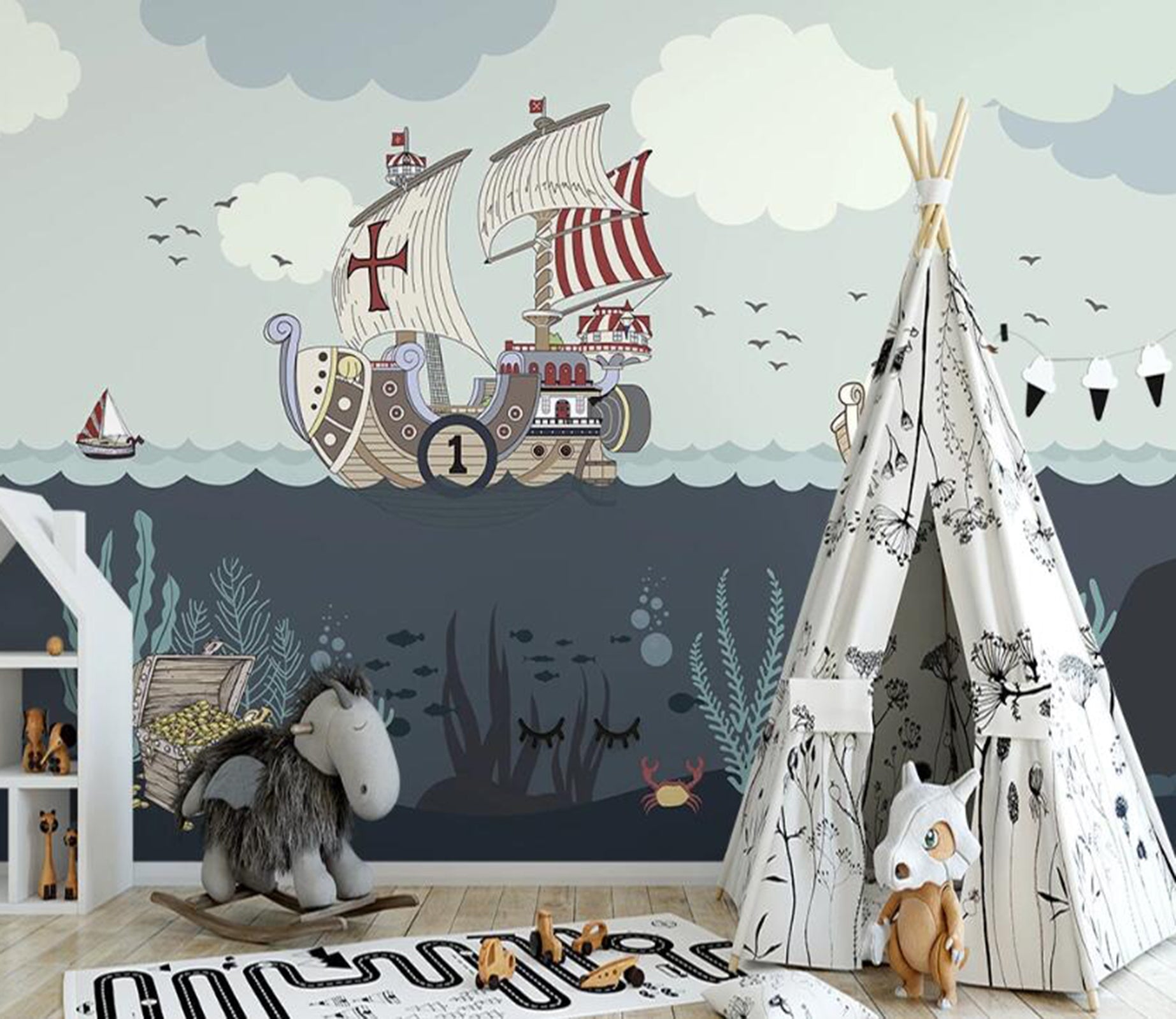 3D Sailboat At Sea WC09 Wall Murals Dai