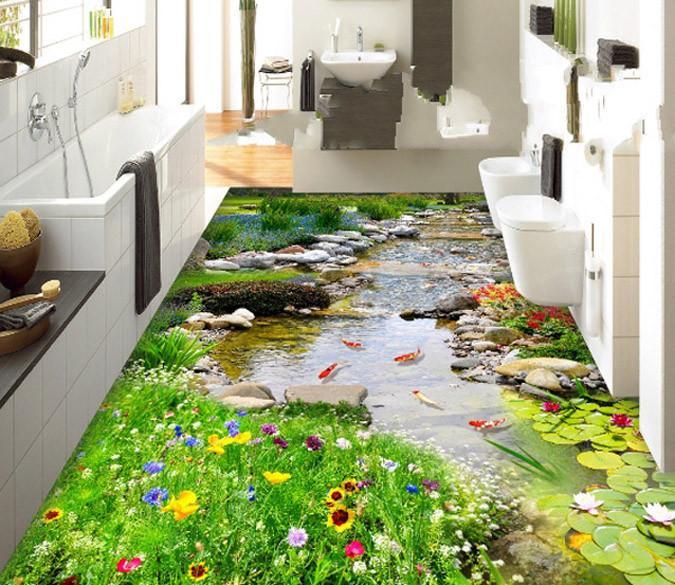 3D Beautiful Stream Floor Mural Non-slip, Waterproof & Removable Rug Mat & Floor Murals