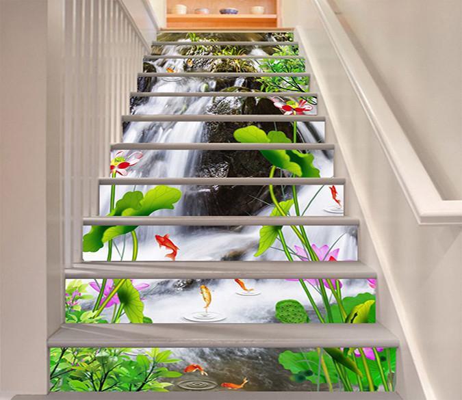 3D River Flowers Fishes 1489 Stair Risers