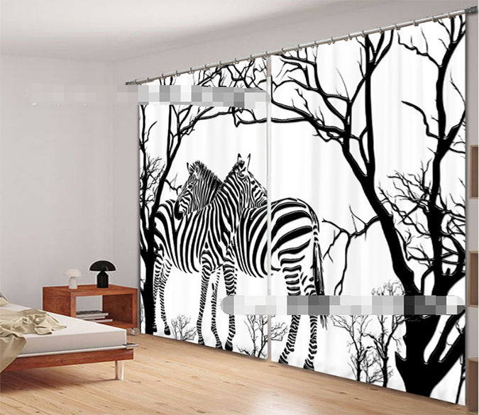 3D Bare Trees And Zebras 1122 Curtains Drapes