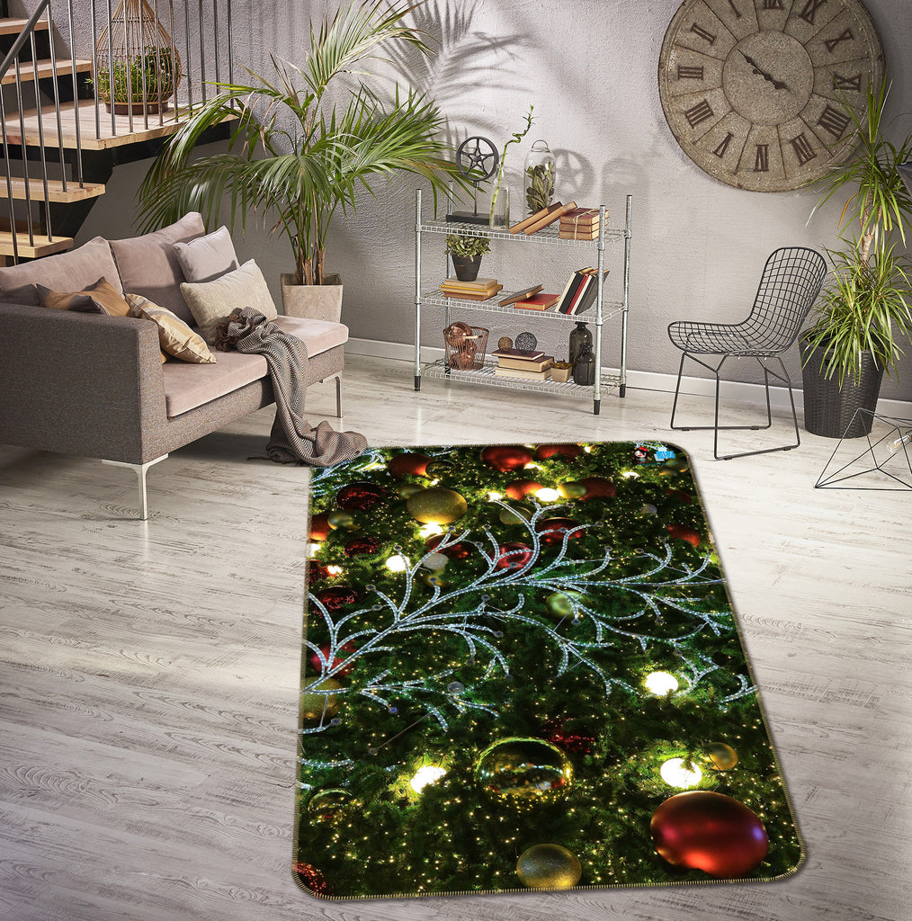 3D Branches Ball Lights 57036 Christmas Non Slip Rug Mat Xmas Sinsin
