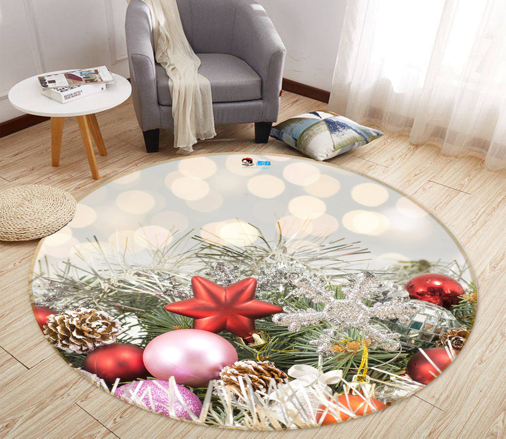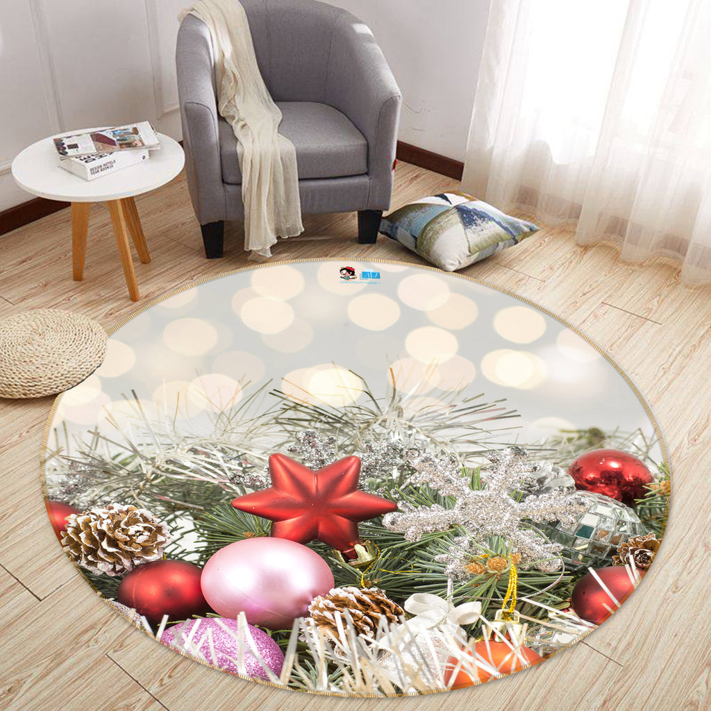 3D Branches Pendant 55186 Christmas Round Non Slip Rug Mat Xmas Sinsin