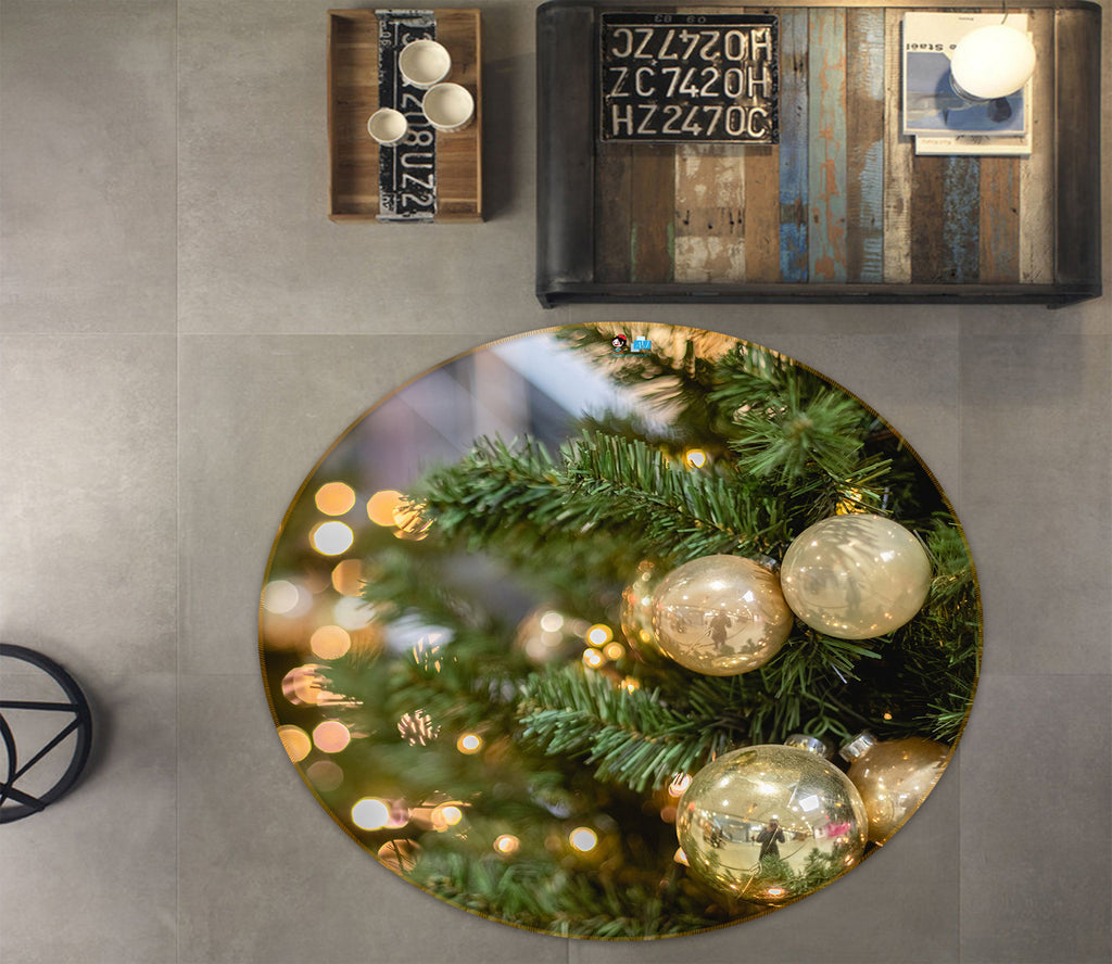 3D Branches White Ball 55255 Christmas Round Non Slip Rug Mat Xmas Sinsin