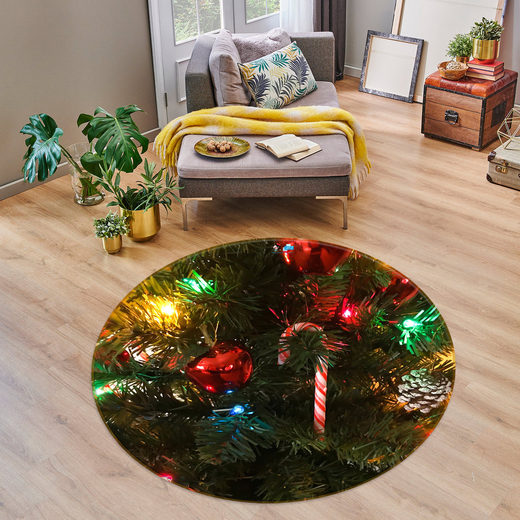 3D Color Ball Pendant 55252 Christmas Round Non Slip Rug Mat Xmas Sinsin