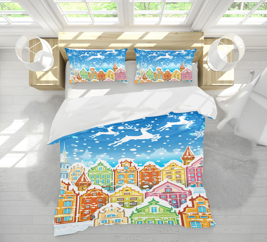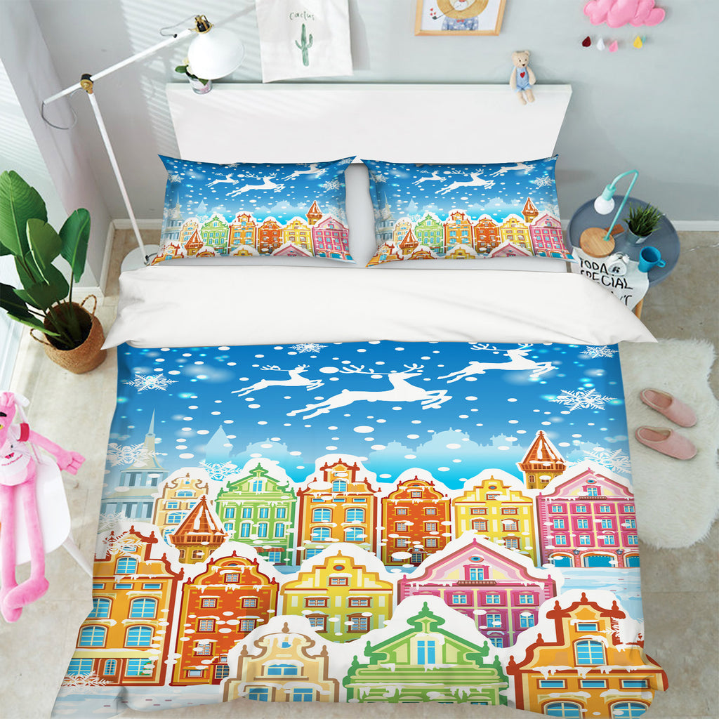 3D Colorful Houses 52240 Christmas Quilt Duvet Cover Xmas Bed Pillowcases Sinsin