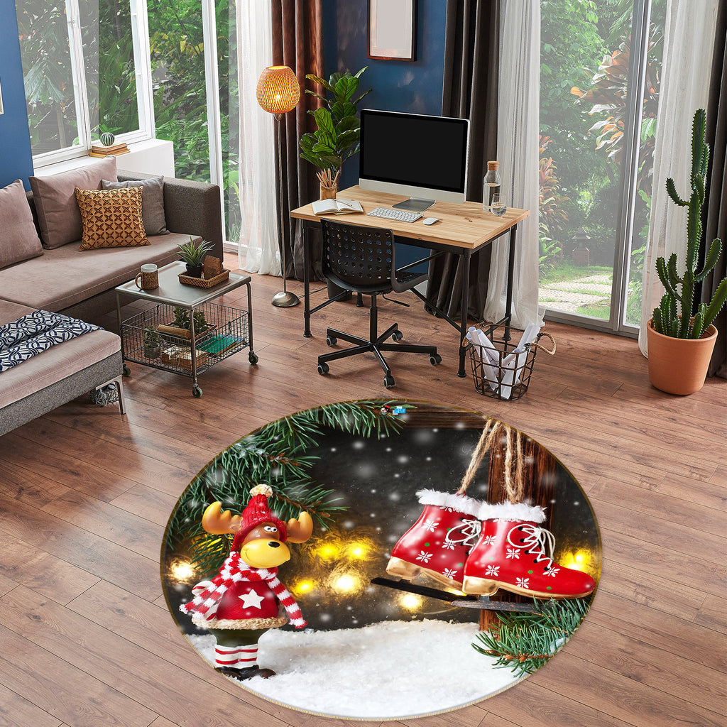 3D Deer Shoe Snow 55259 Christmas Round Non Slip Rug Mat Xmas Sinsin