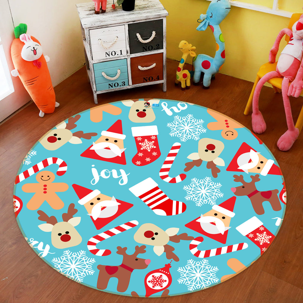 3D Santa Deer Pattern 55198 Christmas Round Non Slip Rug Mat Xmas Sinsin
