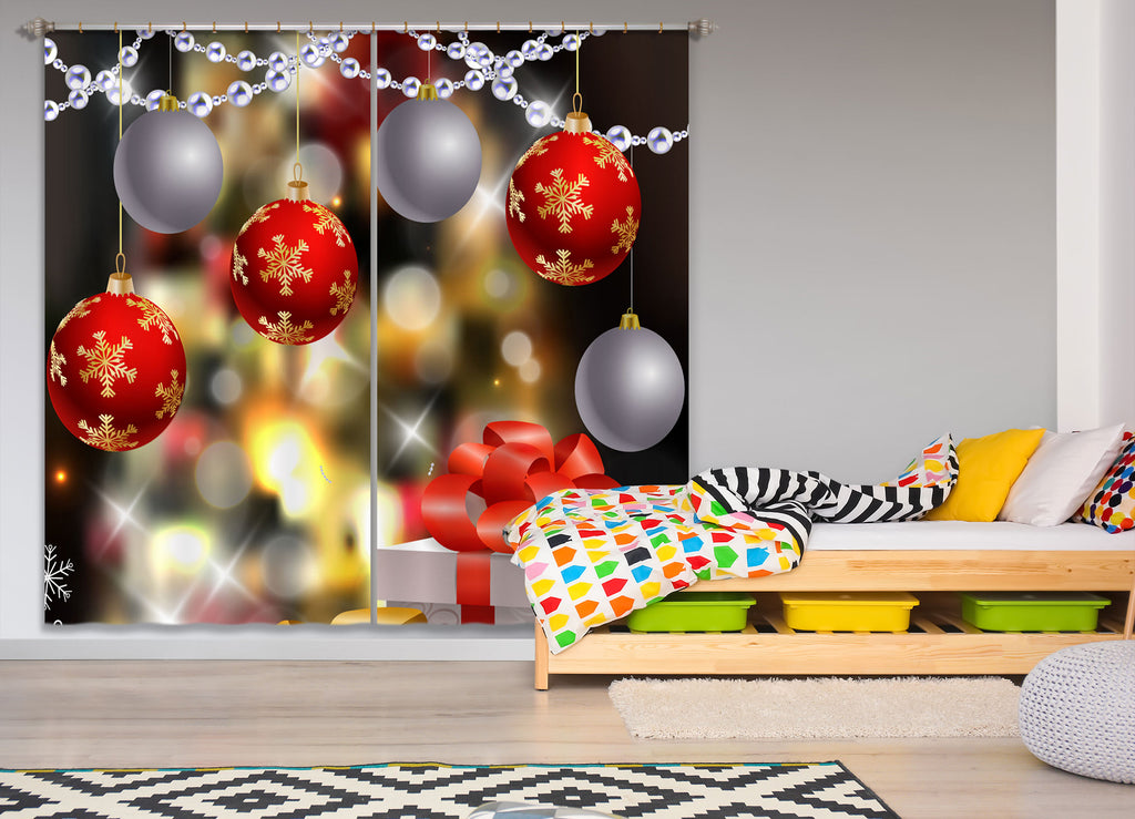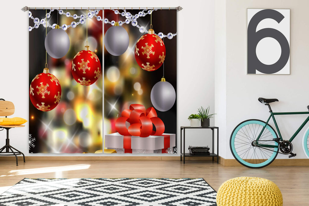 3D Silver Red Ball 53088 Christmas Curtains Drapes Xmas Sinsin