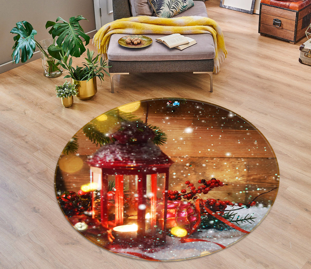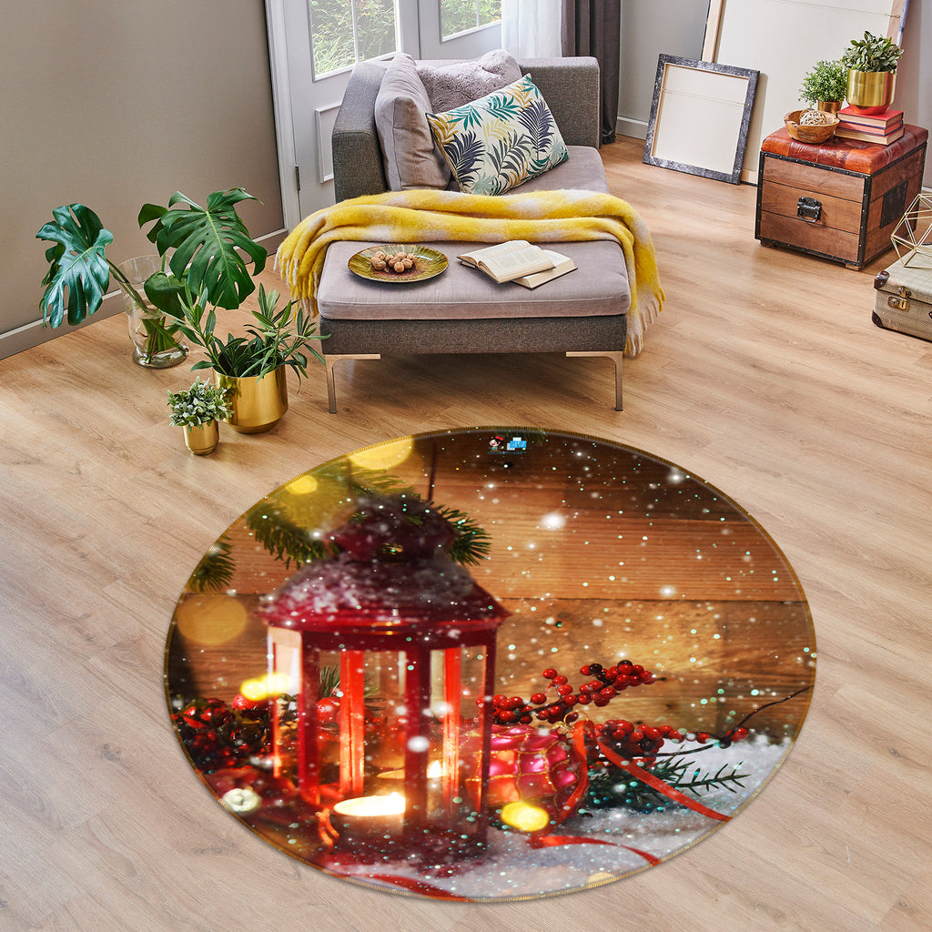 3D Snowflake Light 56052 Christmas Round Non Slip Rug Mat Xmas Sinsin