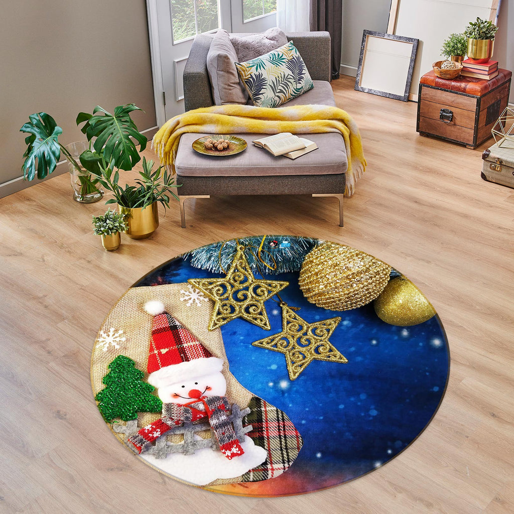 3D Snowman 55256 Christmas Round Non Slip Rug Mat Xmas Sinsin