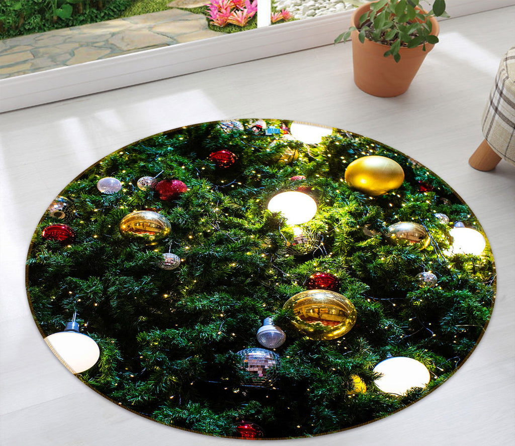 3D Tree Ball 55249 Christmas Round Non Slip Rug Mat Xmas Sinsin