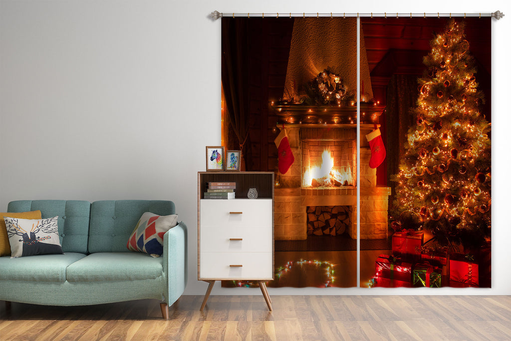 3D Tree Fireplace 53139 Christmas Curtains Drapes Xmas