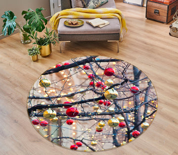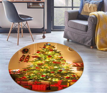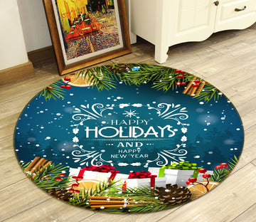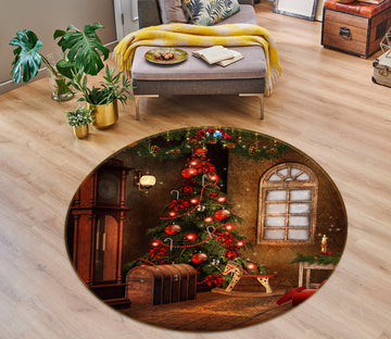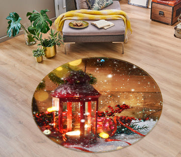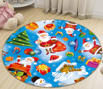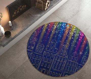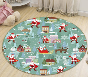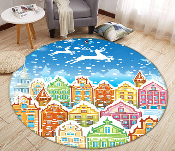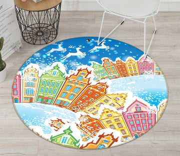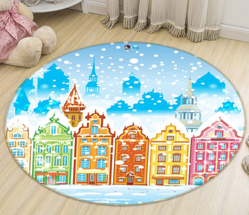 3D Snow Colorful Houses 56027 Christmas Round Non Slip Rug Mat Xmas
