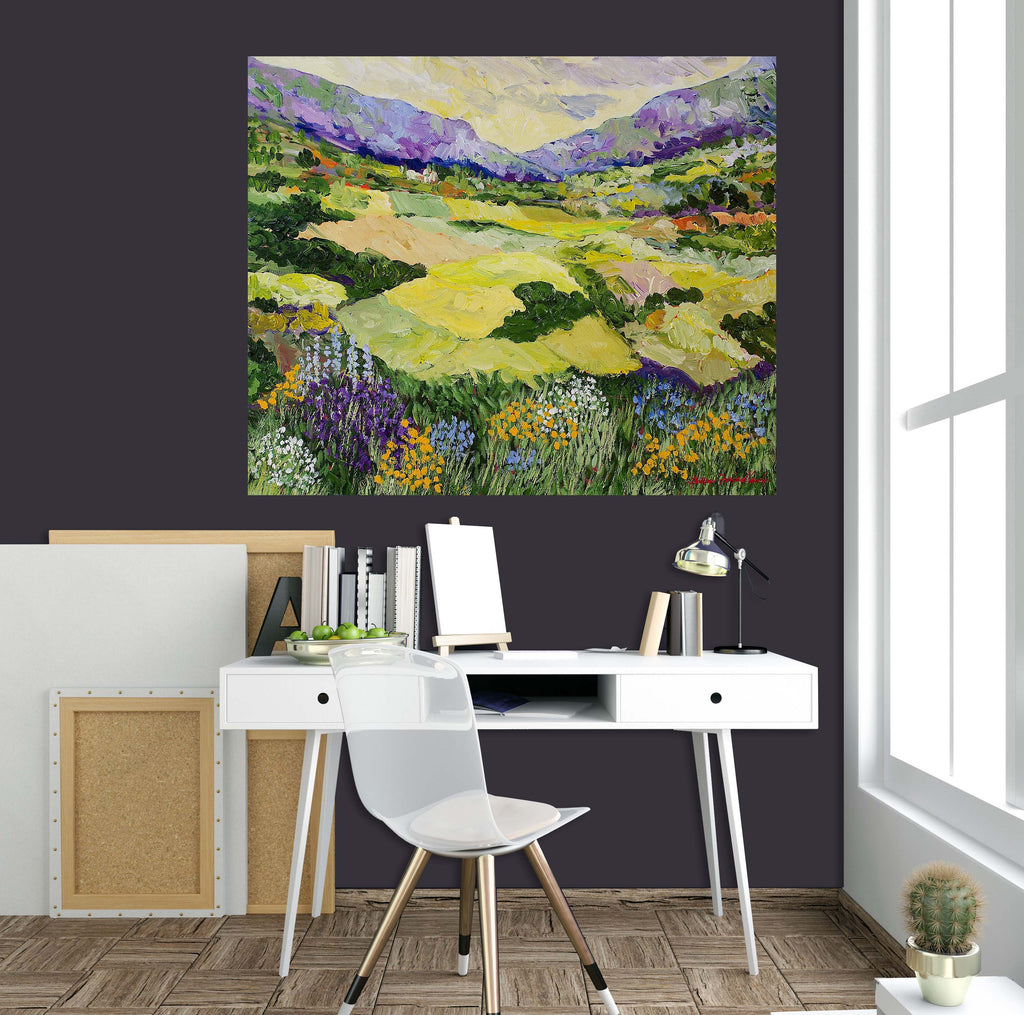 Make sure the wall surface is flat, clean and smooth. A clean and dry wall will help the adhesive from your wall mural to keep its stickiness. Put all panels on the ground, check the order. Measure and write down the dimensions of each panel. Mark vertical guidelines according to the panel's dimensions. Leave 2-3cm overlap between panels.