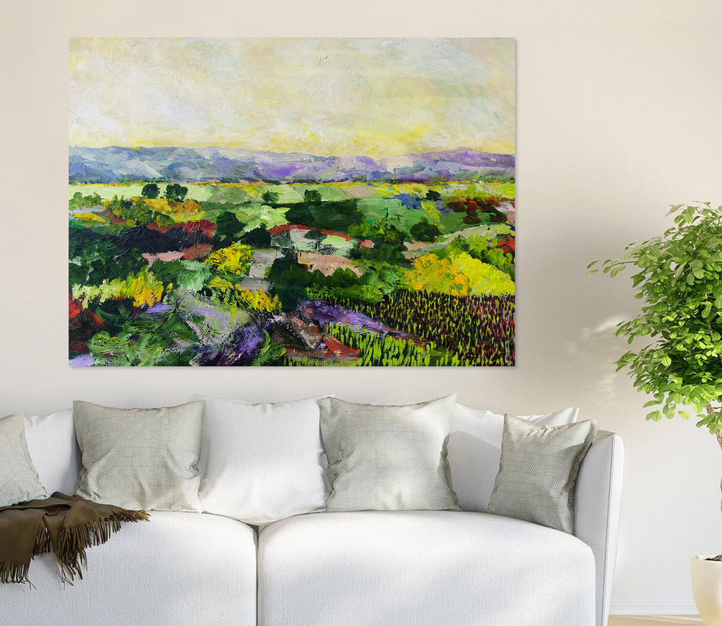 Make sure the wall surface is flat, clean and smooth. A clean and dry wall will help the adhesive from your wall mural to keep its stickiness. Put all panels on the ground, check the order. Measure and write down the dimensions of each panel. Mark vertical guidelines according to the panel's dimensions. Leave 2-3cm overlap between panels.