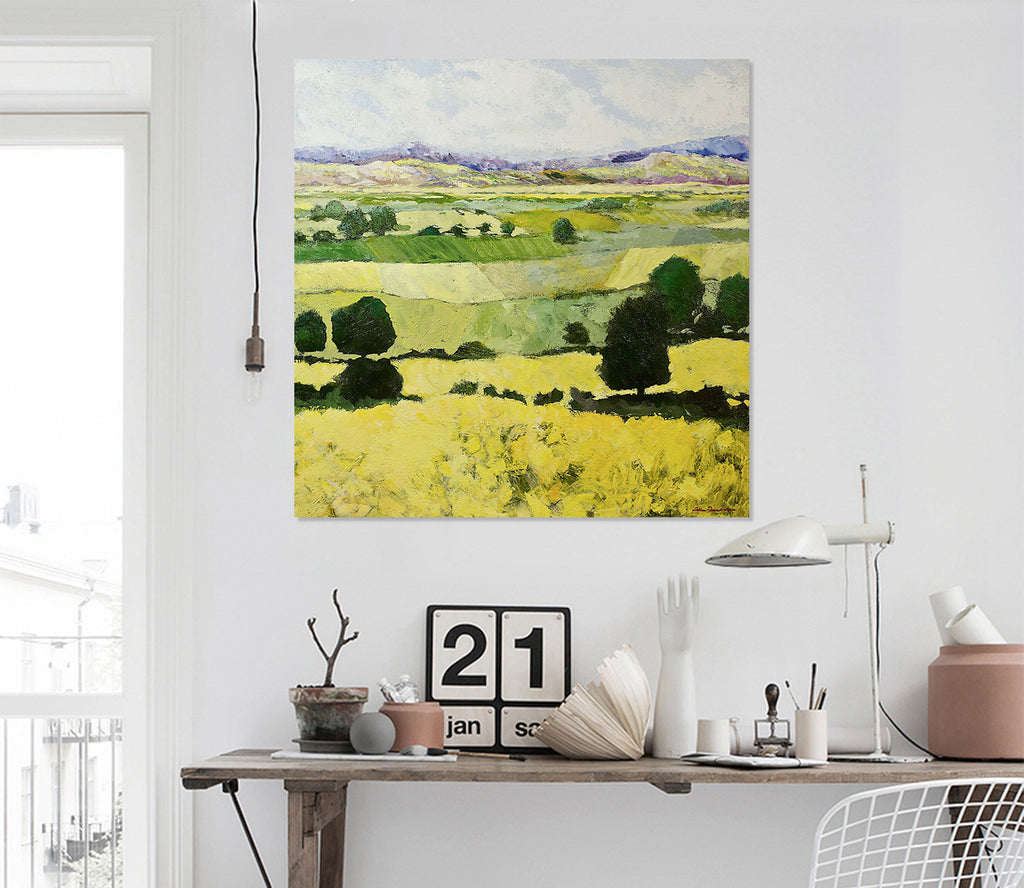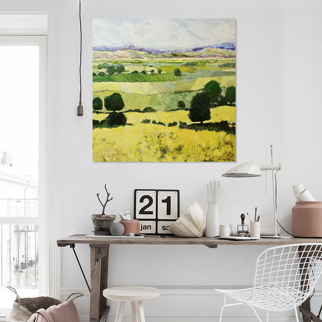 Make sure the wall surface is flat, clean and smooth. A clean and dry wall will help the adhesive from your wall mural to keep its stickiness. Put all panels on the ground, check the order. Measure and write down the dimensions of each panel. Mark vertical guidelines according to the panel's dimensions. Leave 2-3cm overlap between panels.