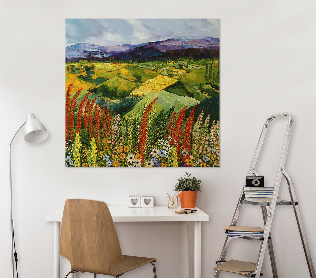 Make sure the wall surface is flat, clean and smooth. A clean and dry wall will help the adhesive from your wall mural to keep its stickiness. Put all panels on the ground, check the order. Measure and write down the dimensions of each panel. Mark vertical guidelines according to the panel's dimensions. Leave 2-3cm overlap between panels.