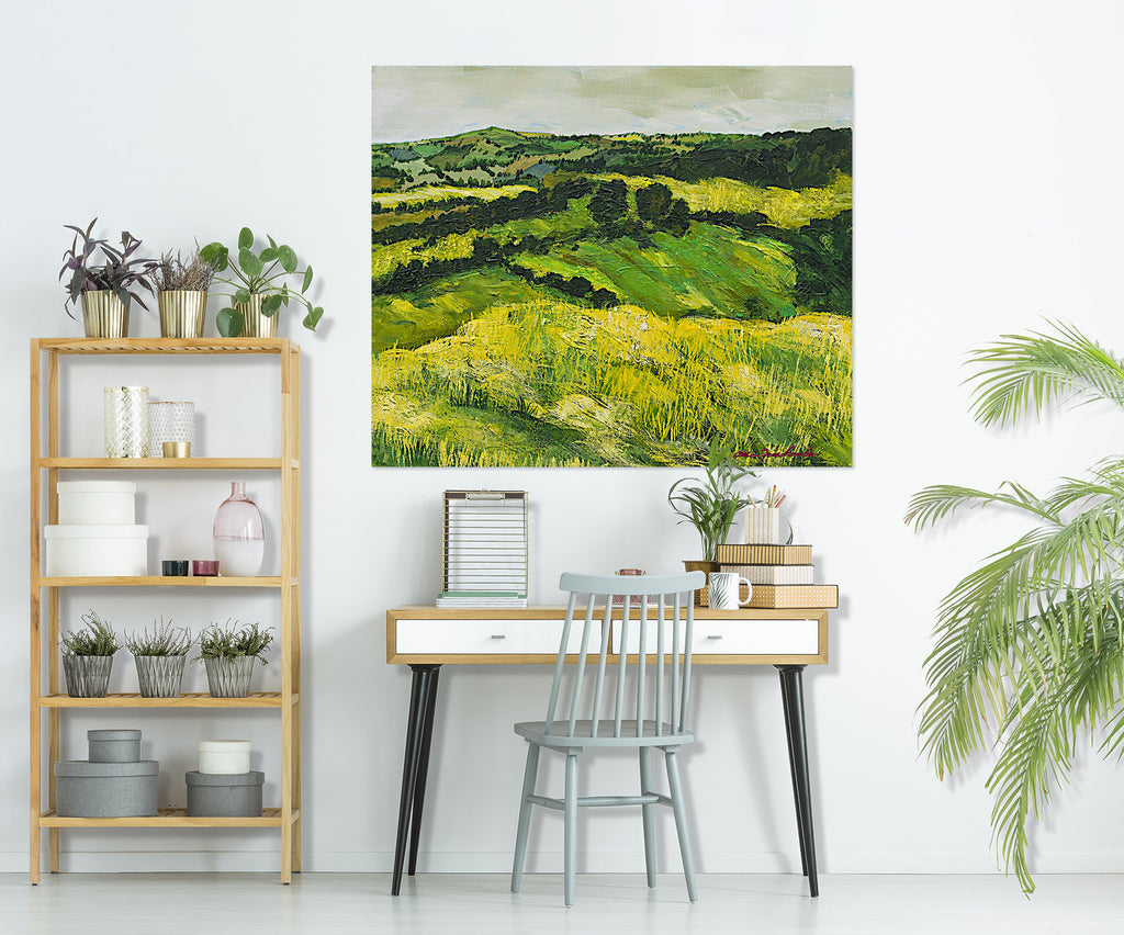 Make sure the wall surface is flat, clean and smooth. A clean and dry wall will help the adhesive from your wall mural to keep its stickiness. Put all panels on the ground, check the order. Measure and write down the dimensions of each panel. Mark vertical guidelines according to the panel's dimensions. Leave 2-3cm overlap between panels.