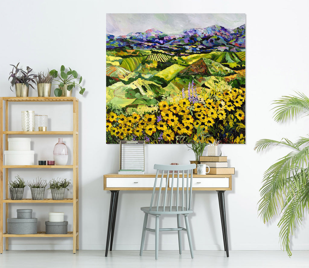 Make sure the wall surface is flat, clean and smooth. A clean and dry wall will help the adhesive from your wall mural to keep its stickiness. Put all panels on the ground, check the order. Measure and write down the dimensions of each panel. Mark vertical guidelines according to the panel's dimensions. Leave 2-3cm overlap between panels.