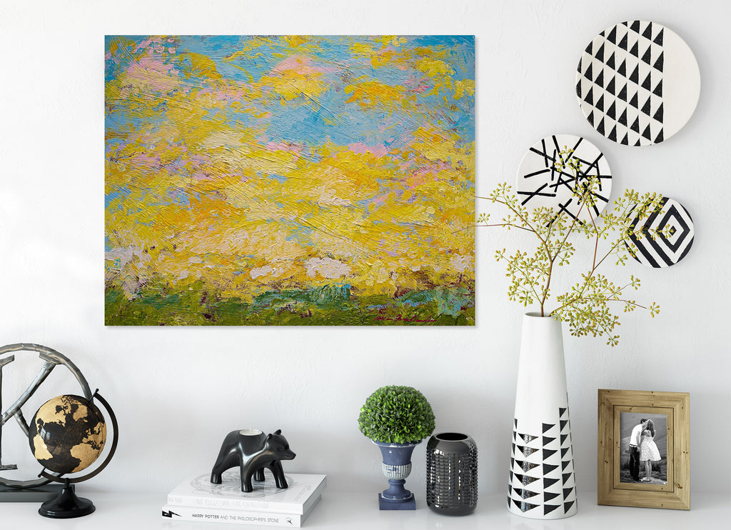 Make sure the wall surface is flat, clean and smooth. A clean and dry wall will help the adhesive from your wall mural to keep its stickiness. Put all panels on the ground, check the order. Measure and write down the dimensions of each panel. Mark vertical guidelines according to the panel's dimensions. Leave 2-3cm overlap between panels.