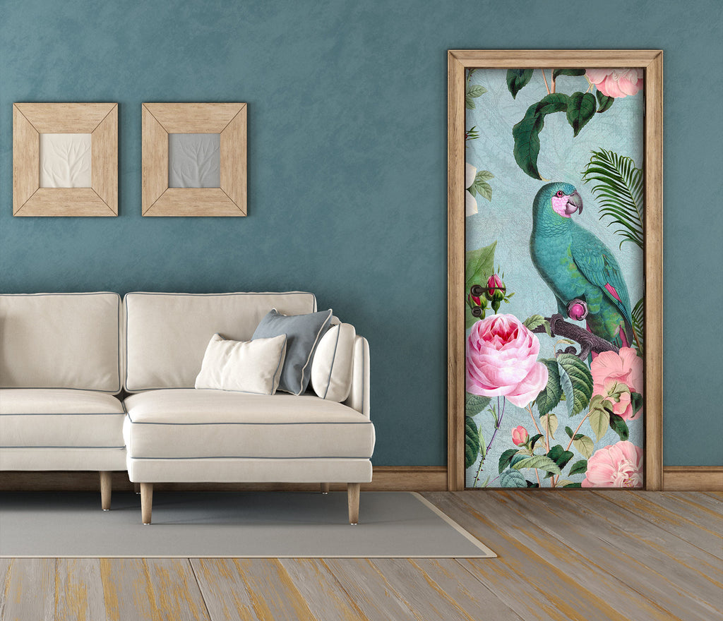 3D Green Parrot Rose 11912 Andrea Haase Door Mural Sinsin