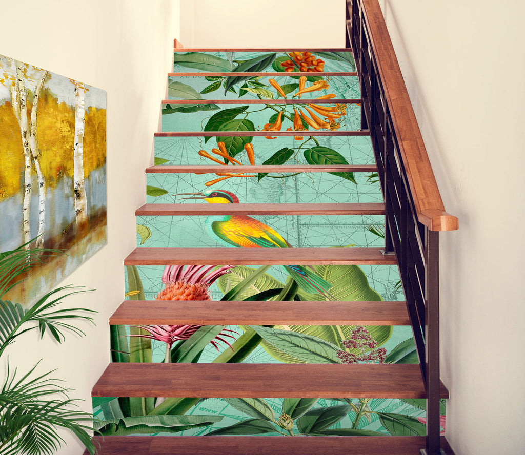 3D Green Leaves Color Bird 104115 Andrea Haase Stair Risers Sinsin
