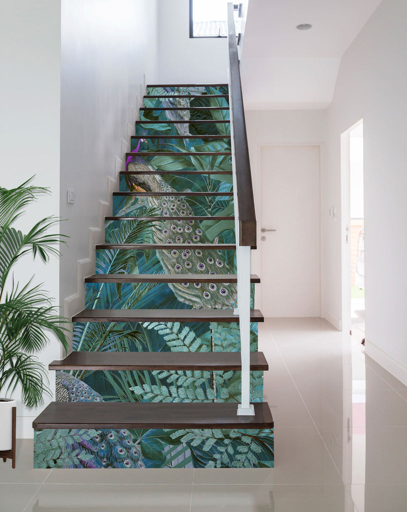 3D Green Peacock Grove 10467 Andrea Haase Stair Risers Sinsin