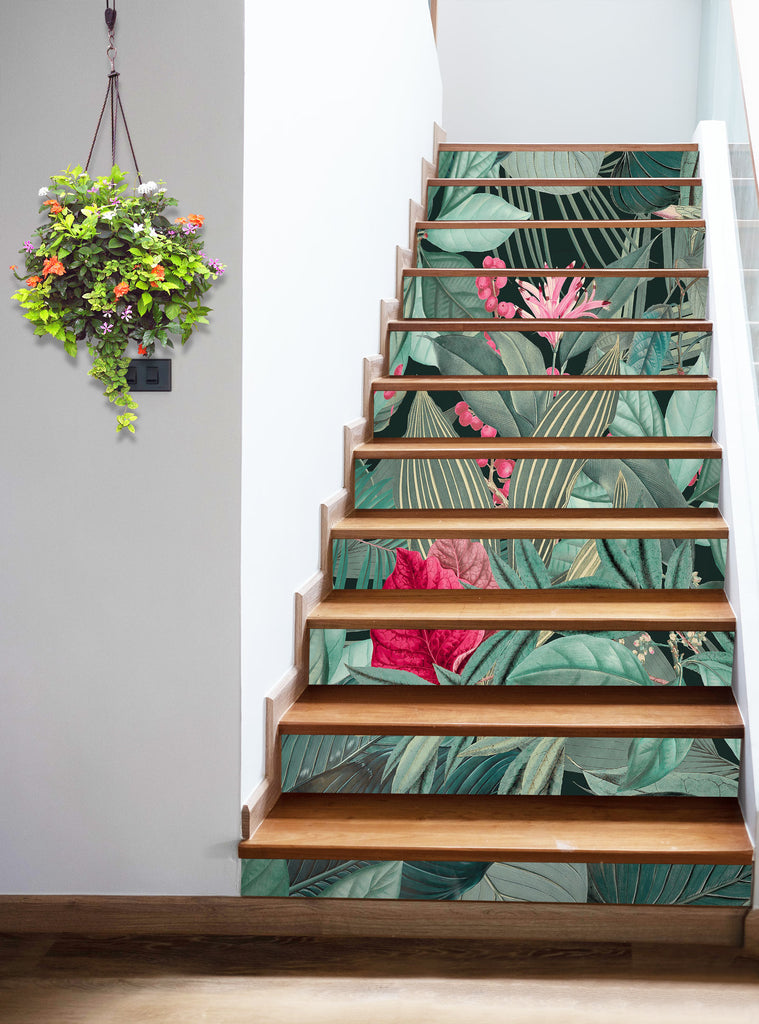 3D Green Pink Leaves 10449 Andrea Haase Stair Risers Sinsin