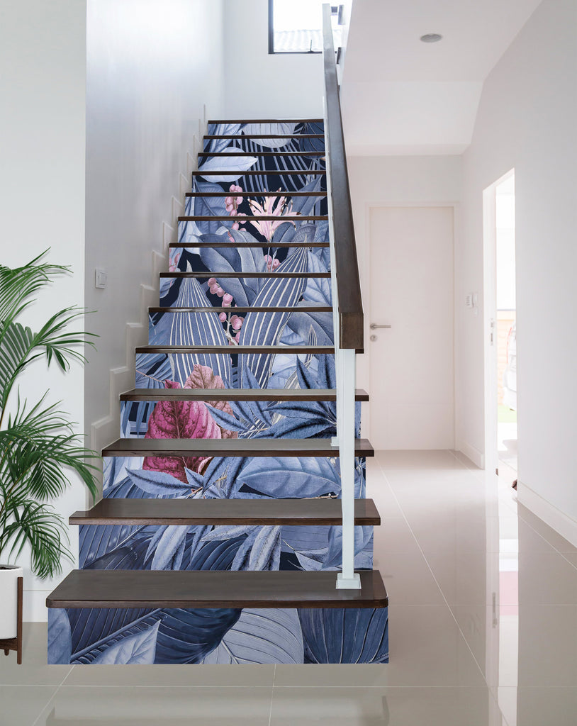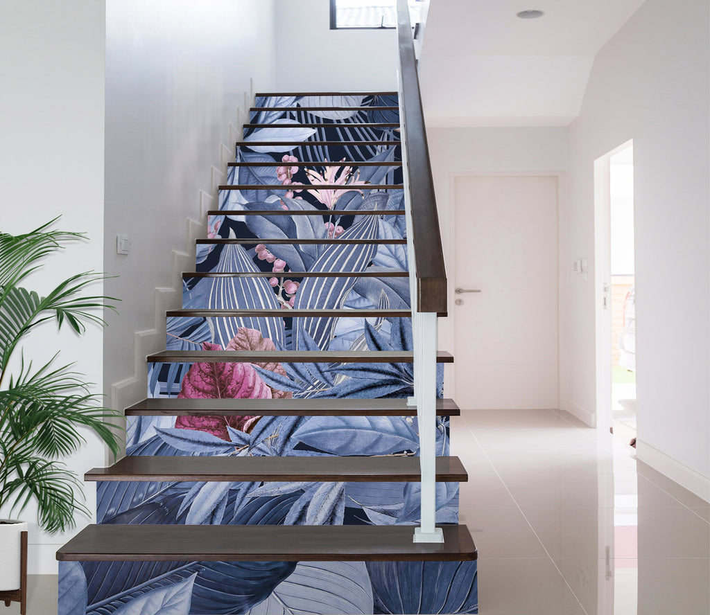 3D Grey Leaves 10451 Andrea Haase Stair Risers