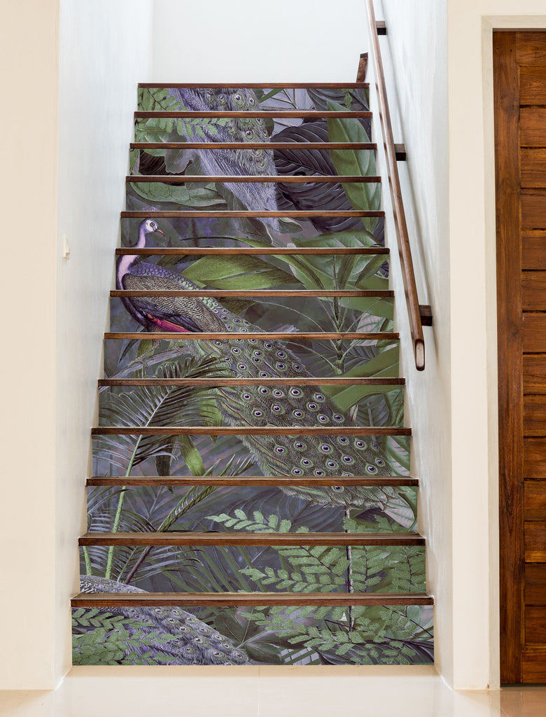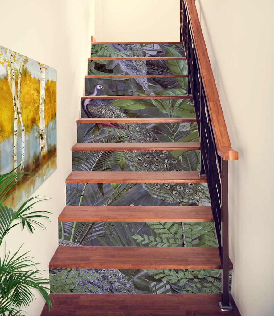3D Jungle Peacock Leaves 10479 Andrea Haase Stair Risers Sinsin