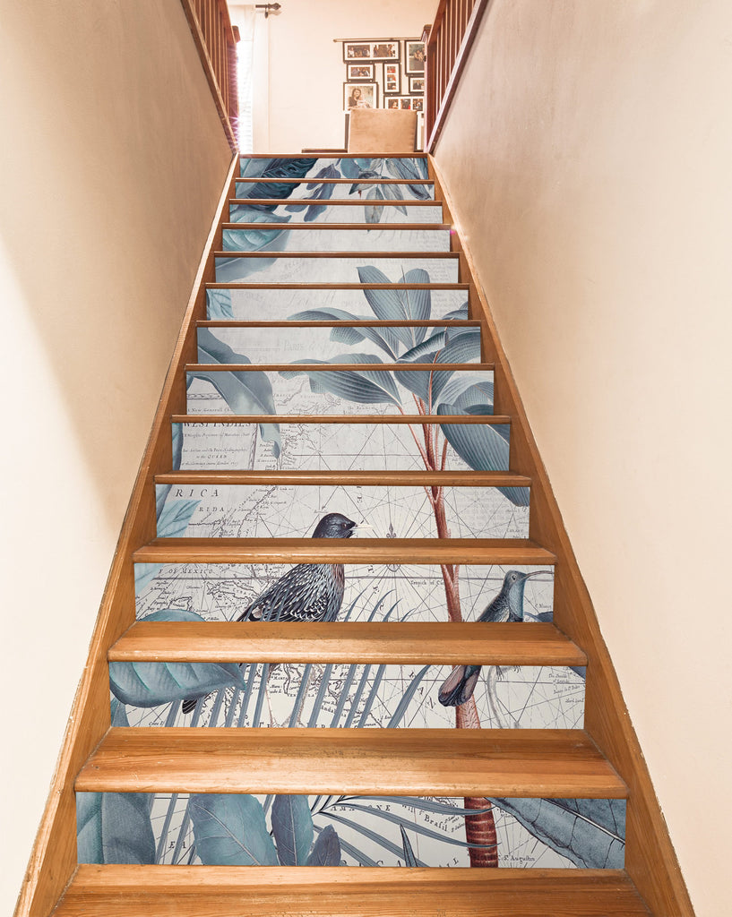 3D Leaves Bird Pattern 104100 Andrea Haase Stair Risers Sinsin