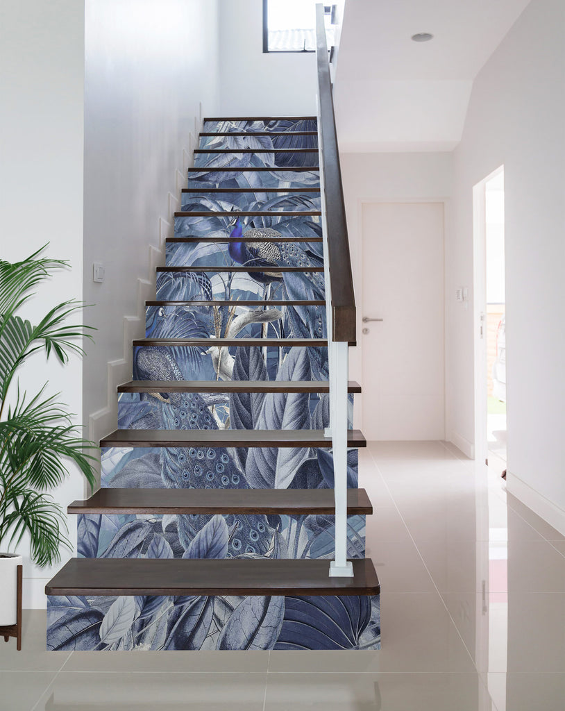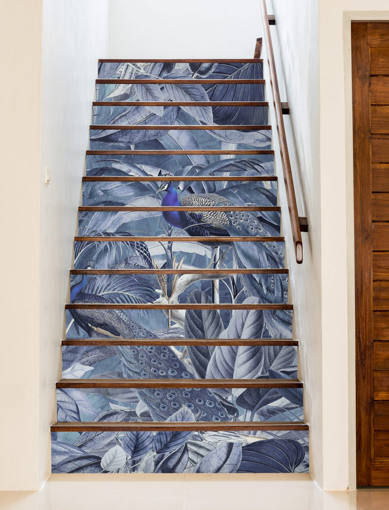 3D Leaves Blue Peacock 10460 Andrea Haase Stair Risers Sinsin