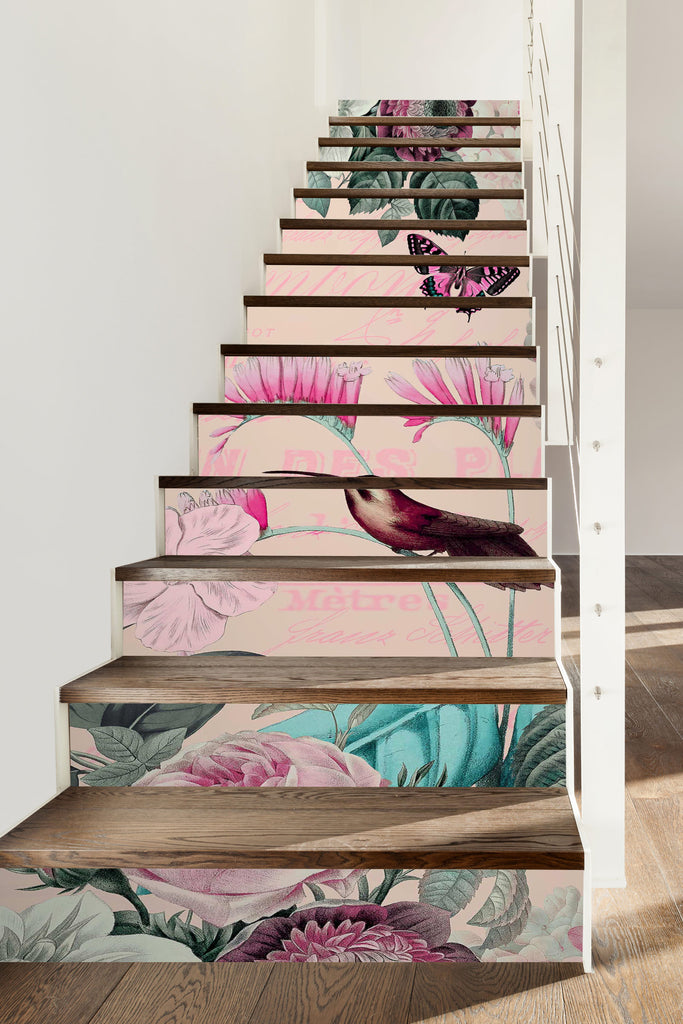 3D Pink Flower Bird 10489 Andrea Haase Stair Risers Sinsin