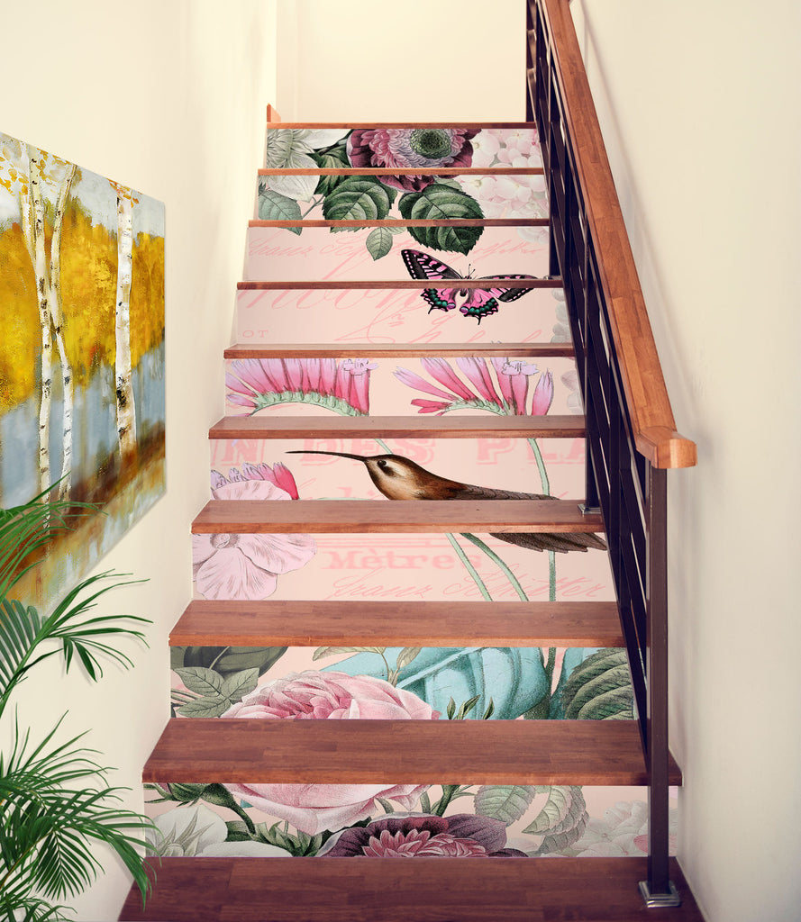 3D Pink Flower Butterfly 10492 Andrea Haase Stair Risers Sinsin